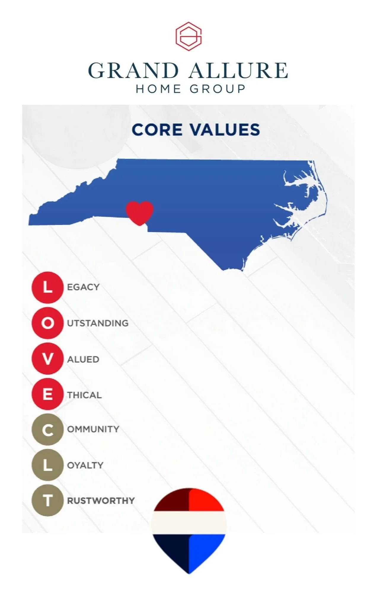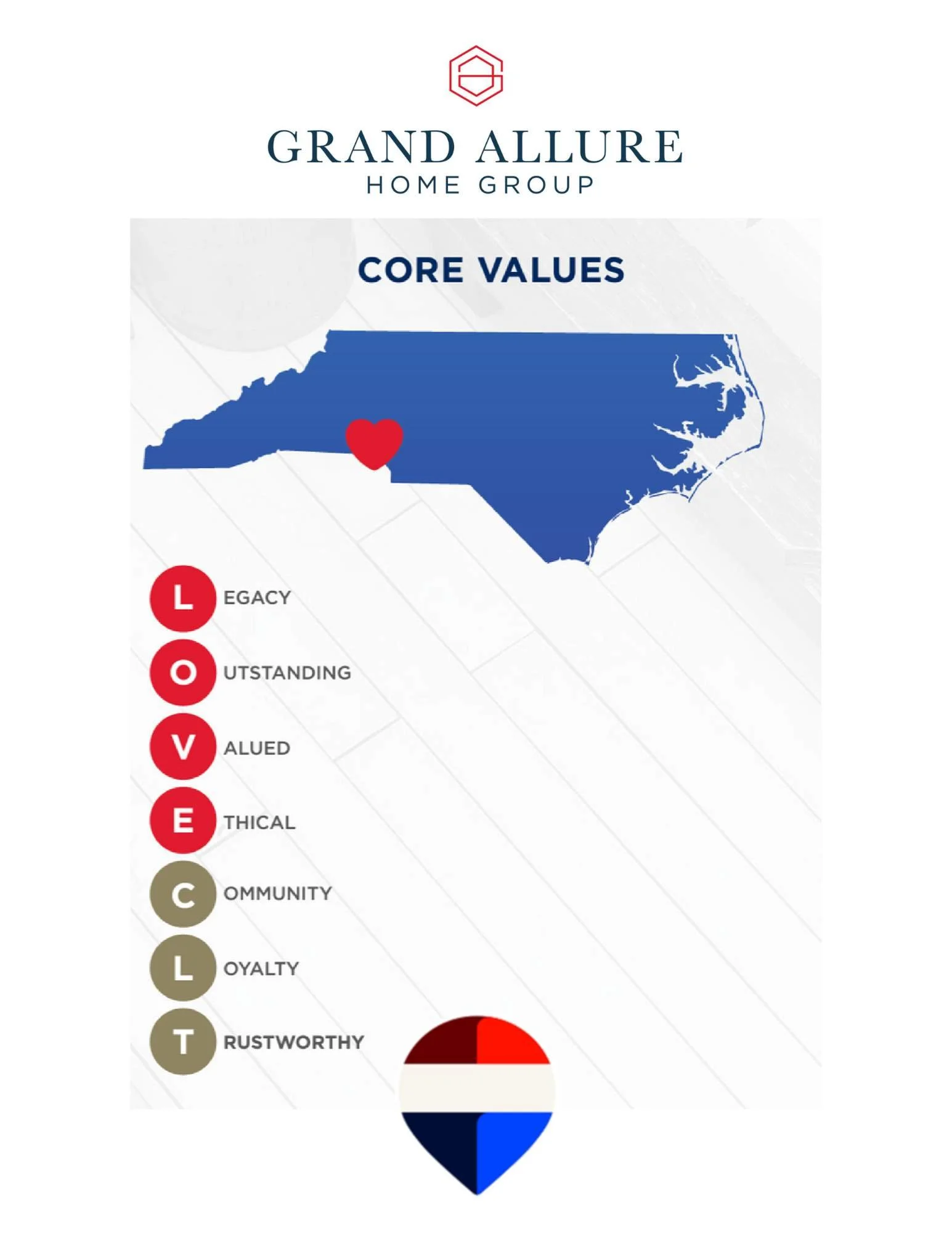At Grand Allure Home Group–North Carolina, LOVECLT defines how we serve our clients, collaborate with partners, and operate in the Charlotte real estate market. These values guide our decisions, our communication, and the level of service we deliver every day.